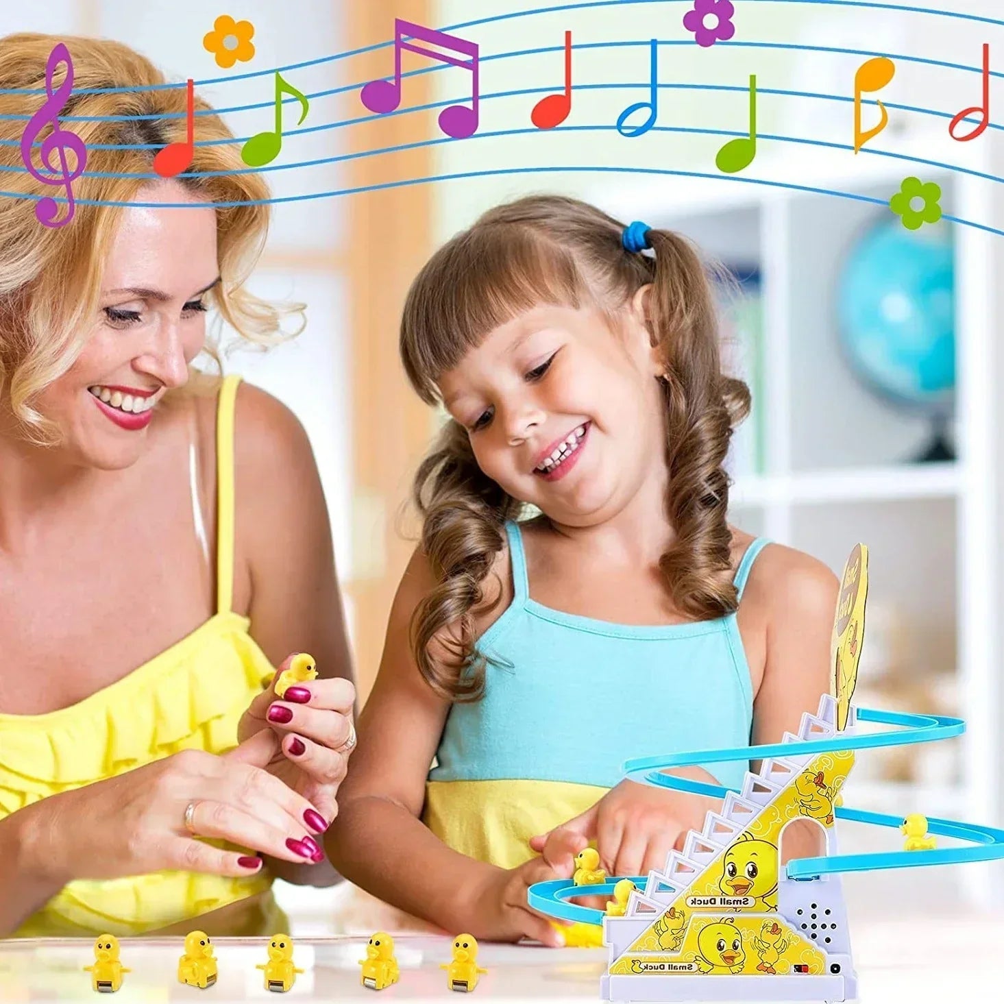 - WORLD'S GREATEST KIDS' GAME -Watch 9 racing ducks stagger up the stairs, then slide down the slide and start again. These naughty little yellow ducks will never get tired . The unique electric roller coaster ladder design brings a lot of fun to you and your children